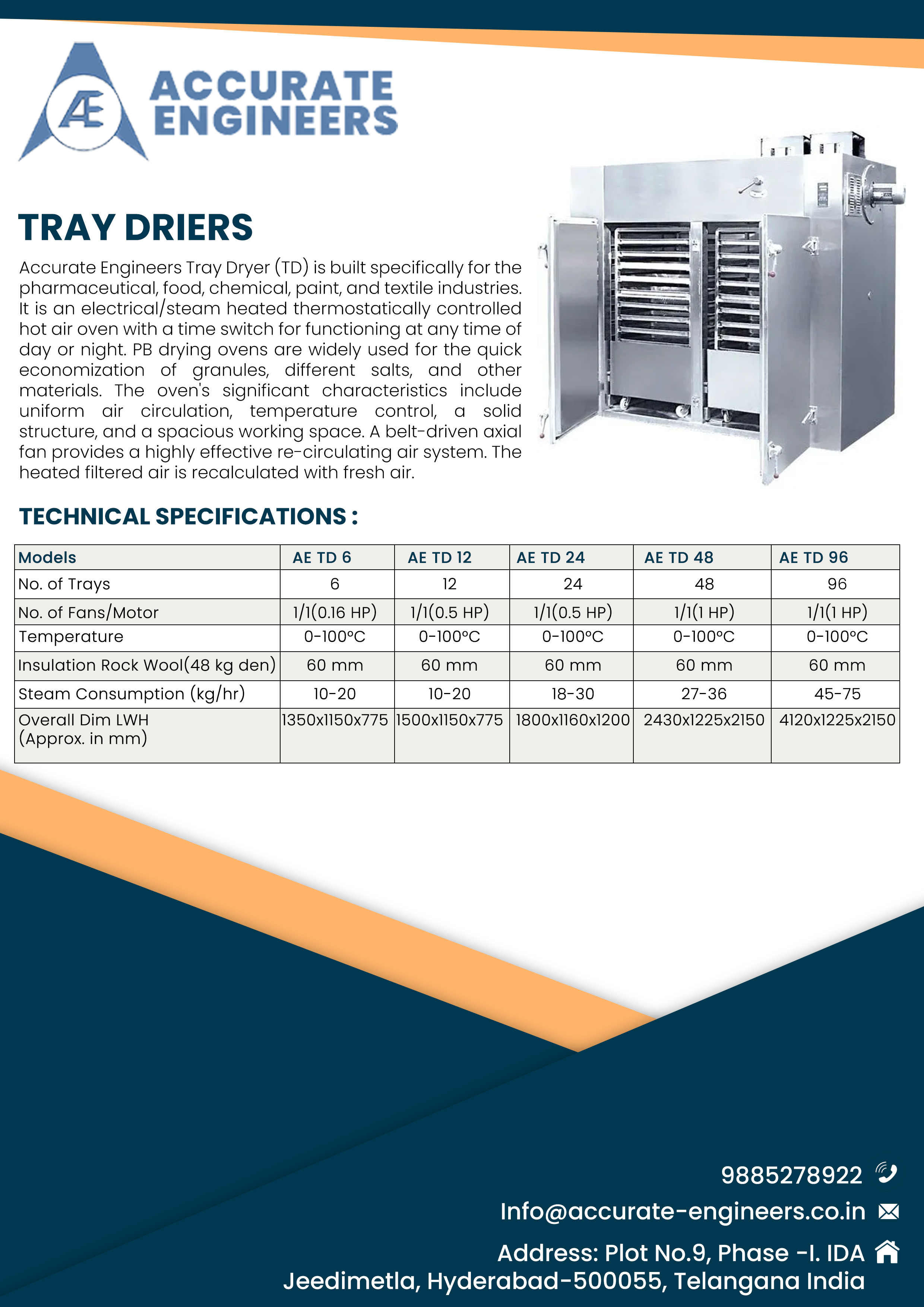 Tech. Specifications of Different Tray Dryer Oven Models